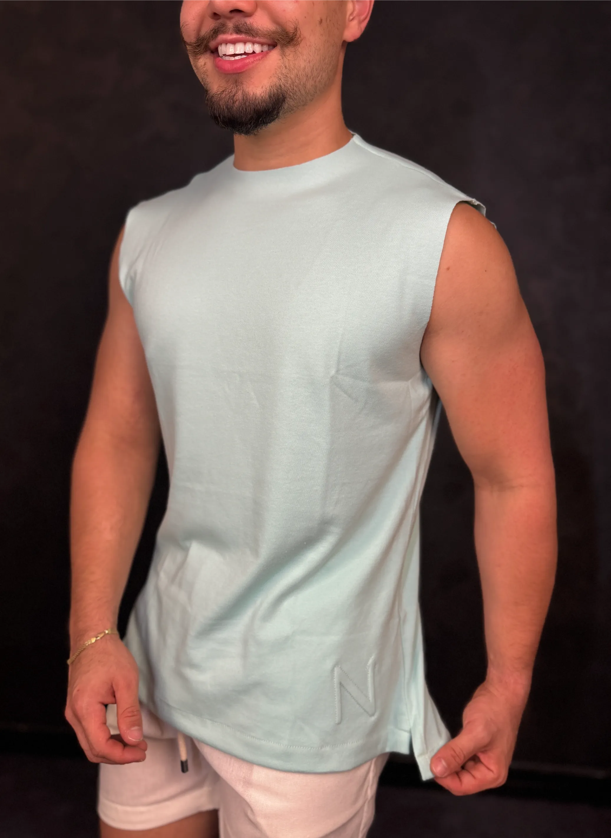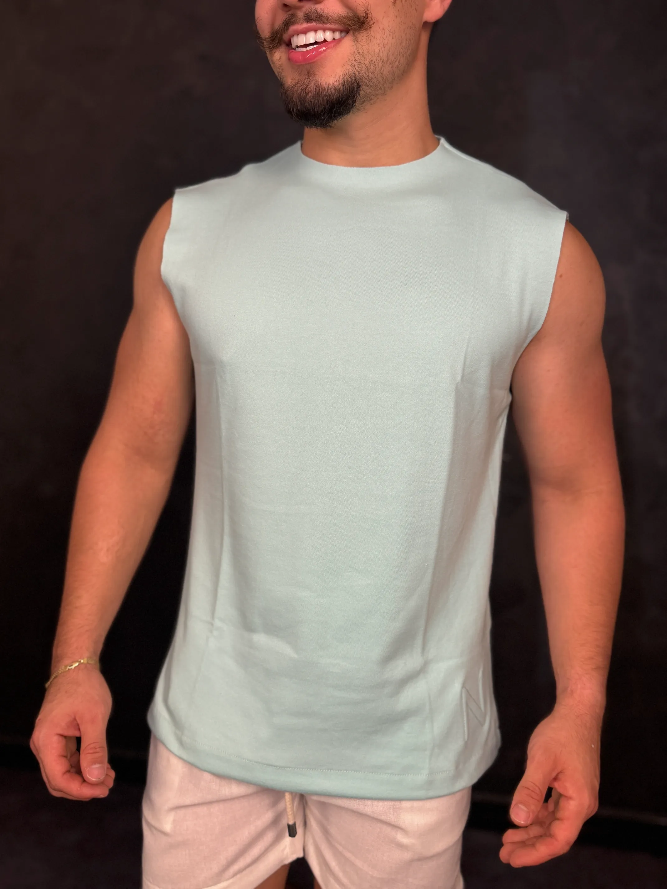 Regata Machão Nype Básica com Estampa em Alto Relevo Azul Bebê